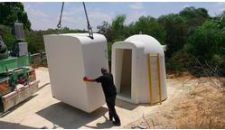 Senare såg delegationen hur ett mobilt skyddsrum sänktes på plats vid ingången till ett samhällsområde i Nativ HaAsara, bara några meter från Gazastaketet, som IDF och Magen David Adom (MDA) använder för att evakuera de sårade i tider av kris längs Gaza-gränsen. Detta skydd har ingen dörr eftersom vi får höra att det helt enkelt inte finns tid att ens öppna en dörr till i detta område. Med bara några sekunder kvar efter den röda varningssirenen är du säker när du kommer in i skyddets gång. Orden på skyddets plakat "för att ge skydd och tröst till våra kära vänner" kommer att stå som ett vittnesbörd om att detta speciella skyddsrum blev möjligt genom generösa gåvor från ICEJ Schweiz.