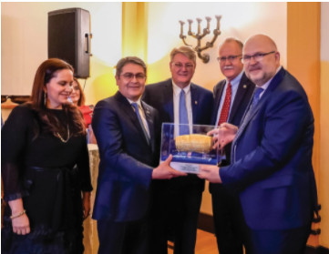 Den kristna ambassaden välkomnade att Honduras ambassad flyttats till Jerusalem och delade ut vårt prestigefyllda Cyruspris till den besökande presidenten Juan Carlos Hernandez för hans principfasta beslut att erkänna Jerusalem som Israels huvudstad.